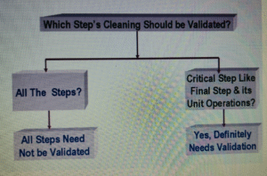 - As stated before, decide which step of the process needs to be validated and then select the equipment & product(s), process and analytical method(s) for equipment cleaning validation.